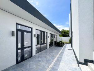 Архитектура выполнена в самом востребованном стиле хайтек. Фундамент выполнен на сваях, все работы ведутся профессиональной строительной компанией с соблюдением всех норм строительства и геодезии. Отделка фасада декоративная штукатурка, декоративные панели. Ограждение балконов и эксплуатируемой кровли стекло триплекс. Благодаря панорамному алюминиевому остеклению дома наполнены большим количеством естественного света. Инженерия отвечает всем современным требованиям и все коммуникации центральные, проложены под землей.