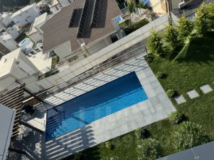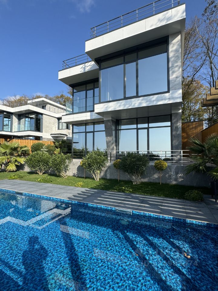 На территории дома собственный бассейн, гараж на два автомобиля и хозяйственные помещения.