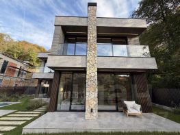 Загородная резиденция в премиальном коттеджном поселке! Крупный московский застройщик создает уникальный проект приватного загородного клуба. Высокое качество строительства и материалов отделки. Опорный конструктив и фундаменты выполнены на сваях, заполнение стен - поризованный керамический кирпич, алюминиевое панорамное остекление. Фасад - потрясающие материалы в естественных природных оттенках - термоясень, испанский микроцемент, бежевый сланец-брекчия. Высокие потолки, элемент второго света в зоне гостиной. Планировка: 1 этаж - кухня-гостиная, гостевая спальня, санузел, постирочная, сауна, 2 этаж - мастер спальня с санузлом и гардеробной, две спальни и санузел. Из всех окон открывается потрясающий вид на горы, лес. Посёлок расположен по дороге на Красную поляну в равной удаленности между Сириусом и горнолыжным курортном. Аэропорт Сочи - 20 минут. В ближайшем окружении множество природных достопримечательностей - каньон Псахо, водопады, монастыри, фермерские лавки, а также будущий гольф-курорт. Для резидентов создается собственный приватный парк на территории 1 Га с зонами терренкура, отдыха вдоль горного ручья, детская площадка и площадка для йоги. Посёлок находится под заботой управляющей компании, а также премиального консьерж-сервиса. Продажа осуществляется от юридического лица, возможен возврат НДС. Окунитесь в атмосферу вашего личного курорта вдали от шума и в окружении первозданной природы с сервисом гранд отелей. Звоните, организуем показ на собственном автомобиле в удобное для вас время.