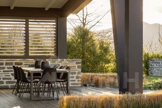 Снаружи — крытая Lоungе-зона, скрытая под моторизованным навесом.