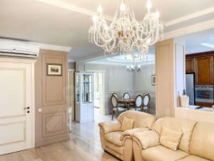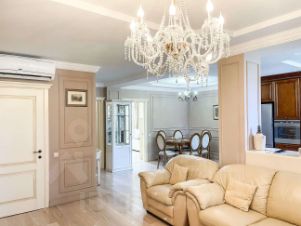 Трехэтажный дом с выполненным дизайнерским ремонтом в закрытом коттеджном поселке!