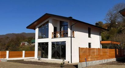 По 15 квт электричество, вода питьевая скважина( есть документы), газ и локальная очистная станция рядом. Забор, автоматические ворота, паркинг на 2 автомобиля. Приватная территория на 3 дома, высажены молодые деревья. Подъезд к домам от трассы по новой дороге. Море 15 минут, до центра Сочи 15-20 минут. Есть возможность к каждому участку оформить по 2 сотки ( будет 7). При приобретении сразу трех домов рассмотрим скидку. Все подробности по телефону.