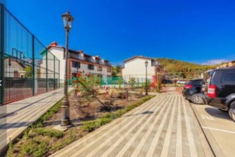 Дом располагает собственным земельным участком, а также имеет закрытую охраняемую территорию, где можно спокойно наслаждаться жизнью и отдыхом. В комплексе также предусмотрены бассейн, спортивная и детская площадки, зона отдыха и сад, что делает жизнь здесь еще более комфортной и уютной.
