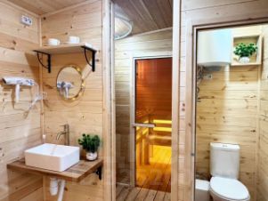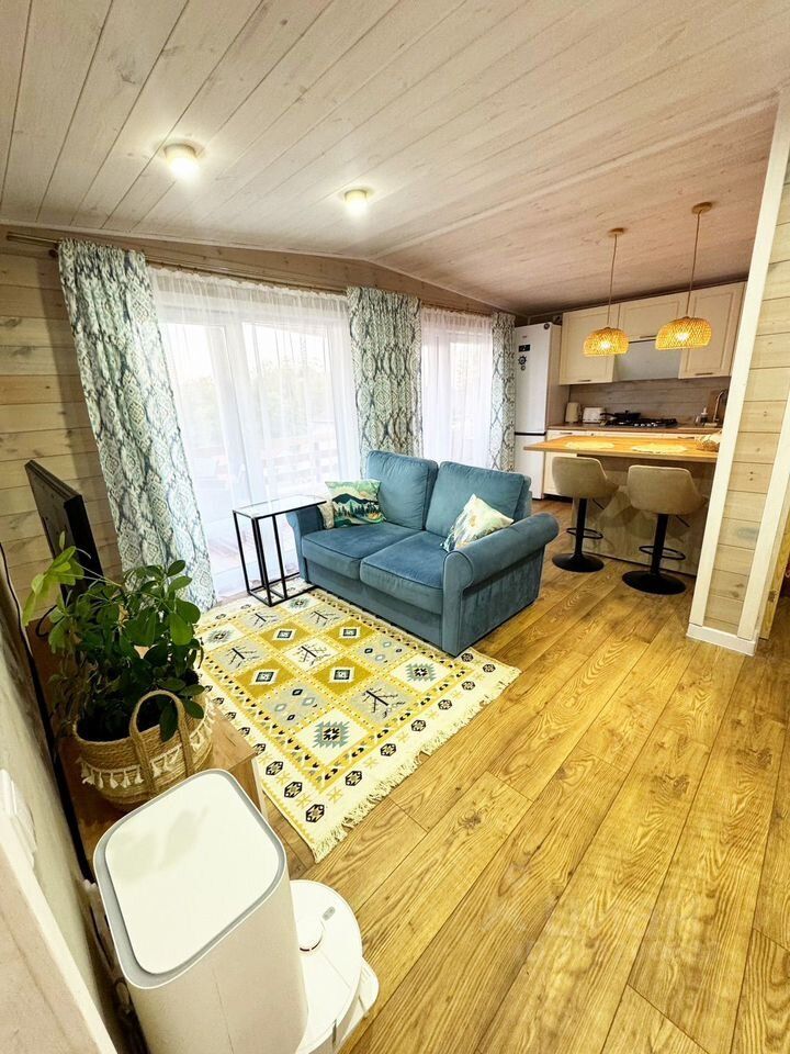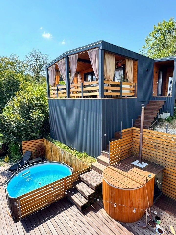 1 дом: каркасный, новый, кухня-гостиная, спальня, терраса видовая, санузел