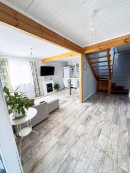 2 дом: брус, каркасник, на первом этаже спальня, кухня-гостиная, санузел, на втором 2 спальни, балкон
