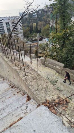 На участке уже выполнены важные элементы благоустройства — есть опорные стены.