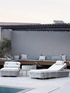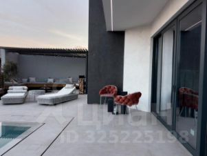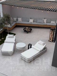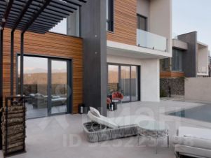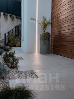 Главный акцент участка - длинный бассейн с подогревом и тропическим душем. Пространства участка защищены рельефом и архитектурой - дом полностью уединён и не раскрыт соседям.