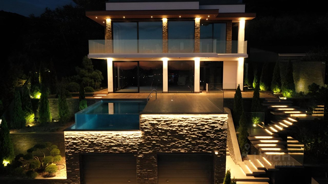 - Эксклюзивный дизайн: Эксплуатируемая кровля (100 м²), переливной бассейн infinity, ландшафт с хвойными и бонсай, зона BBQ с биоклиматической перголой.
