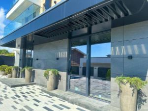 Отделкa домa - вентилиpуемый фаcaд из керaмогранита и композитными панелями.
