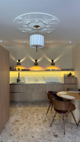 В доме потолки гипсокартон два слоя , натуральная гипсовая лепнина , натуральная инженерная доска в комнатах , в общих пространствах и с\у итальянский/испанский керамогранит, на стенах комбинированная отделка :декоративная штукатурка , американские обои и высококачественная покраска . На кухне столешница- кварц, раковина и смеситель Японские Omoikiri, индукционная итальянская плита со встроенной вытяжкой Elica, ПМ Casarte с функцией сушки без разводов.