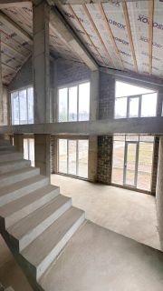 — Высокие потолки: • первый этаж — 4,5 м • второй этаж — до 6 м в пике — Формат позволяет сделать второй свет, дизайнерский интерьер — Дома просторные, светлые, с ощущением объёма и воздуха — Современные фасады, единая концепция посёлка