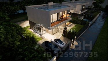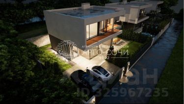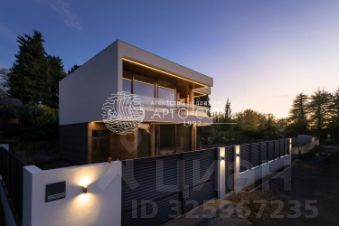 Дом возведен uз монолитного железобетона, кровля плоская, выполнена из ПВХ мембраны PLASTFOIL.