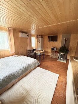 Участок ровный, есть каркасный дом 30 квадратов с ремонтом.