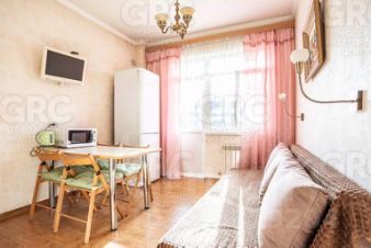 На четвёртом этаже большая однокомнатная квартира с отдельной кухней.