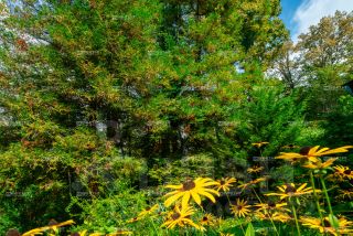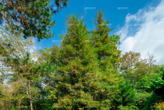 Плодоносящий сад с разнообразными деревьями и кустарниками