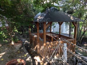 В разных частях участка установлены две беседки (одна монолитная, одна легкая). Оборудованы гараж и мастерская. Около участка выделено место для 2-х гостевых автомобилей.