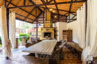 На территории: баня на дровах, просторная зона для мангала и парковочные места.