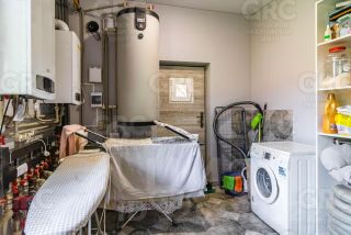 На первом этаже расположены: просторная кухня-гостиная, гостиная с уютным камином, кабинет, гостевая спальня, гардеробная, санузел и техническое помещение с постирочной.