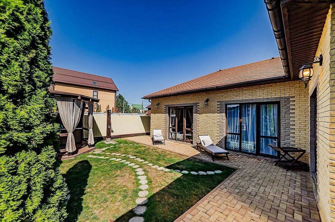 На участке обустроена уютная зона отдыха с беседкой и летней кухней, зоной релакса и летним душем. Дополнительно предусмотрено место для установки бани-бочки и бассейна, что позволяет создать полноценную приватную курортную зону на собственной территории.