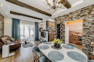 В доме выполнен дизайнерский ремонт с использованием качественных и дорогостоящих материалов. Интерьер выдержан в современном стиле, каждая зона продумана до мелочей. Установлены тёплые полы по всему дому, качественная сантехника европейских брендов, керамика испанского производства, кварц-виниловое напольное покрытие, пять сплит-систем для комфортного климата в любое время года. Дом полностью укомплектован мебелью и техникой — всё остаётся новому собственнику, дополнительных вложений не требуется.