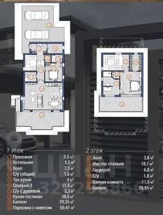 Удобная планировка дома, которая включает в себя спальные комнаты, санузлы и гардеробные с хорошо продуманной логистикой, так же большая кухня-гостиная и техническая кухня, кабинет и террасы с прекрасным видом на море. Просто сказочный панорамный вид.