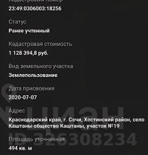 Собственник! Продаю участок в с. Каштаны (Хостинский район, Сочи) с красивым панорамным видом на горы Кавказского хребта. Свет подключен (в Снт новая ТП на 400 квт), на воду надо бурить скважину, бурение скважины уже оплачено. Газопровод в 150 метрах от участка, есть возможность подключения, выданы ТУ на соседние дома. Участок расчищен, почти ровный рельеф, что редкость в Сочи. Участок с нац. Парком не граничит! До моря 10 минут на автомобиле, до остановки общественного транспорта и магазина Магнит 200 метров. Пятая подзона росавиации, согласование на строительство на землях Лпх, Снт, садоводство не требуется. К участку забетонирована подъездная дорога, есть две подъездные дороги. Кадастровый номер на фото. С обеих сторон участка свободная земля, можно использовать для собственных нужд. Возможно рассмотреть обмен на готовый дом, коммерческую недвижимость, автомобиль.