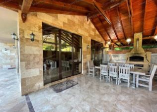 Собственная скважина с хорошим дебетом. Парковка с навесом на 4 автомобиля, бассейн с подогревом, летняя кухня с зоной мангала, участок с хвойными и декоративными деревьями, плодоносящий сад, теплица. Спокойный и безопасный район, максимальная приватность.