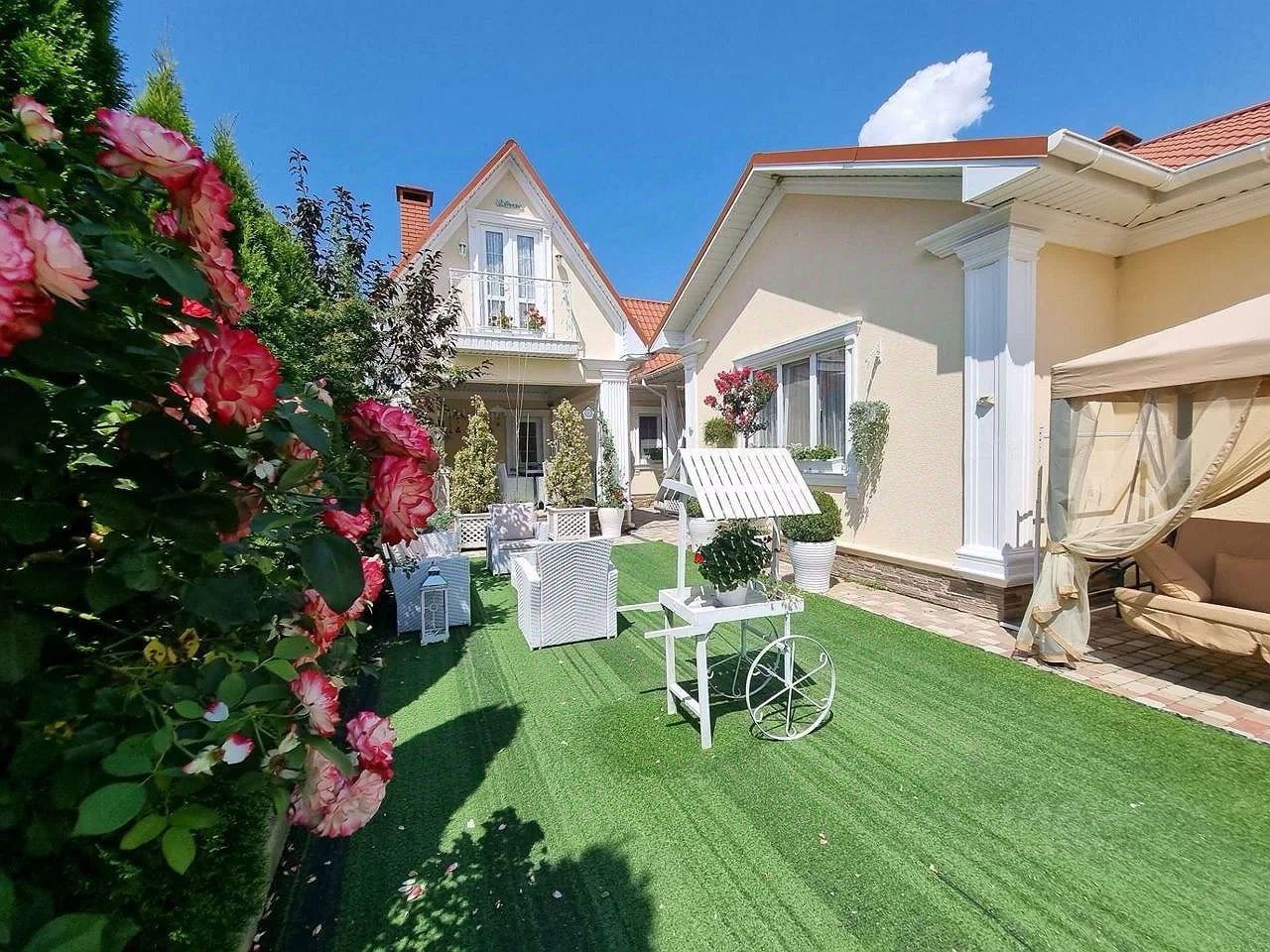 Земельный участок — 10 соток, закрытая территория с ухоженным ландшафтным озеленением. На участке расположен капитальный гараж площадью 20 м², высажены плодовые деревья, виноградник, киви — участок зелёный, уютный и полностью обустроенный для комфортной жизни.