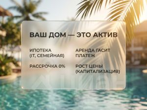 • Сценарий Умный актив: Если вам нужно уехать, дом не будет стоять пустым. Управляющая компания возьмет на себя сдачу в аренду, и дом сам будет оплачивать вашу ипотеку.