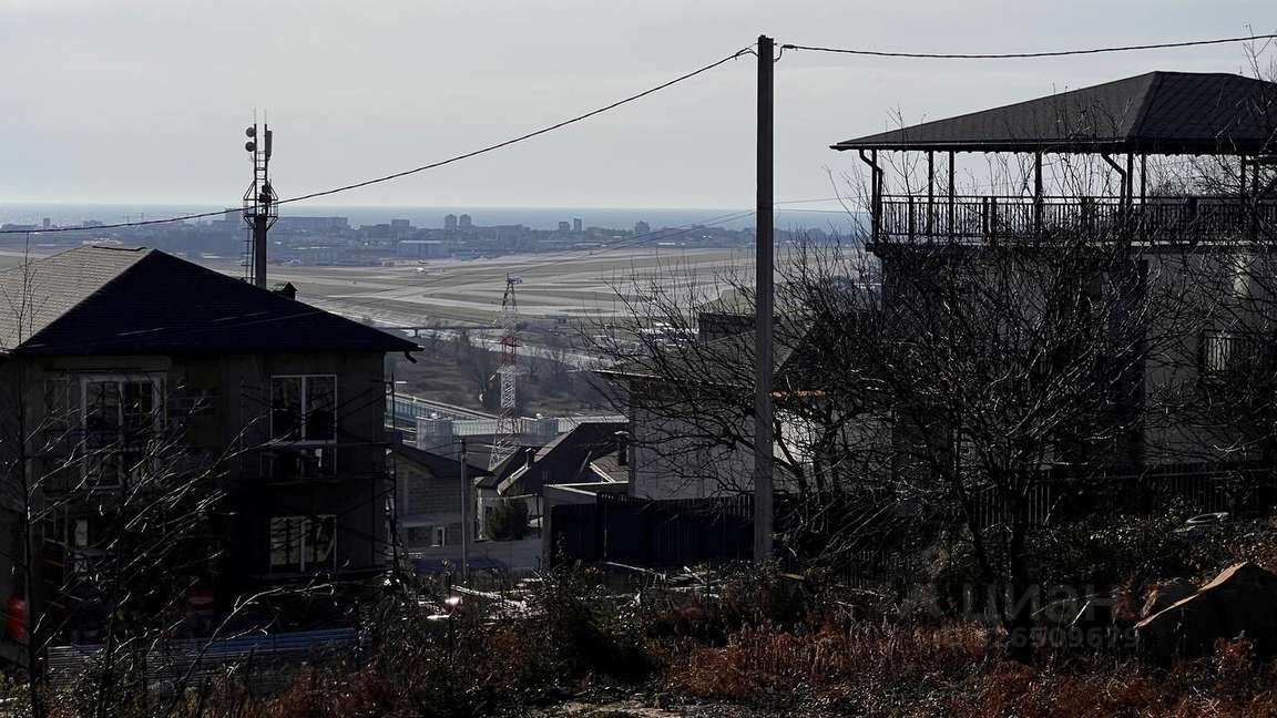 Вид на горы, аэропорт и море. Участок имеет незначительный уклон, не оползневой. Вид разрешенного использования: ИЖС.