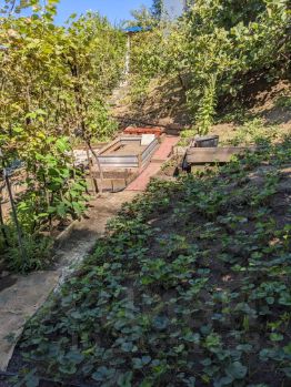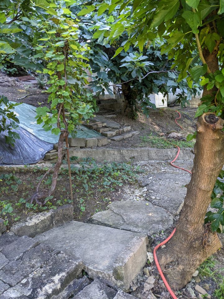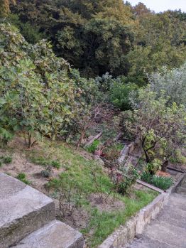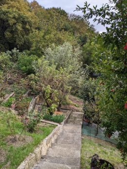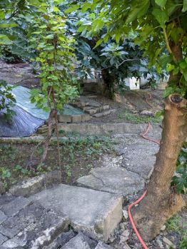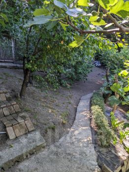 На территории участка имеется ухоженный плодоносящий сад: 8 деревьев разных сортов инжира(можно делать бизнес), 5 яблонь разных сортов, 6 слив разных,4 хурмы разных,3 фейхоа,2 груши разных, 2 мушмулы, 1 дерево плодоносящего граната, 1 мандарин абхазский сладкий + клубника(плодоносит три раза в год),+лесная земляника.