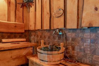 Особой гордостью владения является уникальная баня на дровах, парная которой отделана массивом липы и наполнена чудесным ароматом дерева и целебных трав. Элементы декора ручной работы и керамическая посуда для сервировки стола подчеркивают внимание к деталям и создают неповторимую атмосферу. В доме есть уютный каминный зал, полностью оборудованная кухня и открытая терраса, огороженная от посторонних глаз. На террасе вас ждет собственный бассейн с подогревом и крытая беседка с мангальной зоной из натурального камня.