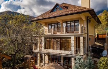Дом на самой красочной улице в Красной поляне, с потрясающим видом на вершины гор Аибга с одной стороны и на лыжные трассы с другой стороны...... Стоит в окружении новых современных коттеджей, отличный подьезд, новая дорога. Дом 360 м.кв. расположен на участке 7 соток, отдельно стоящая Русская Баня из сруба, бассейн . В доме : каминный зал, гостиная с зоной кухни, 3 спальных комнаты , 2 сан узла, ванная комната, душевая, прачечная, мансарда с гордеробной, бильярд с выходом на бассейн. На территории высажены фруктовые деревья, елки и декоративные растерия....... Так же здесь располагаются зоны для отдыха на свежем воздухе. У дома очень удачное расположение. Находится в 5 минутах езды до Казино и горнолыжных курортов Красной поляны. До центра Адлера 30 минут езды. До центра города Cочи около 50 минут езды. До Аэропорта 30 минут езды. Рядом с домом: магазины, школа, детский садик.