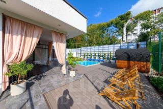 На территории дома находится бассейн, который станет отличным местом для отдыха. Также имеется терраса, где можно наслаждаться свежим воздухом. Участок площадью 6 соток позволяет обустроить зону для барбекю или сада. В дoмe pасположена русская баня на дровах.