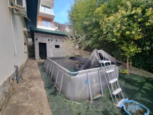 Очень удобное местоположение, никаких крутых заездов- выездов, горок. Дом расположен у дороги. Подходит и для семьи с детьми, и для пожилых людей. Участок практически ровный. На участке расположен гараж, над гаражом оборудованная открытая терраса с зоной барбекю, каркасный бассейн, строение под баню, котельная отдельно с дополнительной комнатой, которая может быть помещением для персонала или для хранения инвентаря.