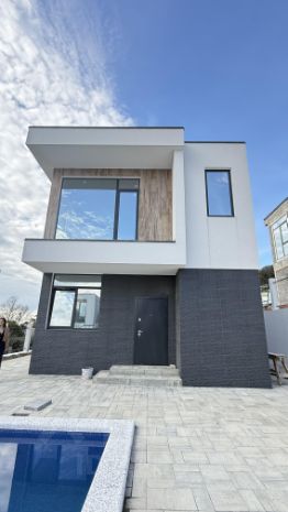 Продаётся новый , современный дом в стиле Hi-Tech , с прямым видом на море . Построен строительной компанией с соблюдением всех норм.
