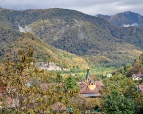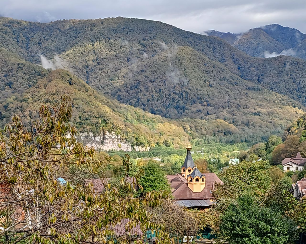Фронтальный вид с участка - на каньон долины реки Шахе и заповедную красоту юга России - горный хребет Фишт. Рассмотрю продажу двух участков расположенных рядом. ( С корректировкой стоимости). Возможен обмен на квартиру в Пушкин ( СПб) или Сочи.