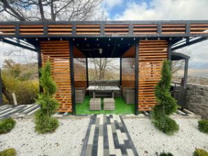 1-й этаж: прихожая, большая гостиная совмещенная с кухней, санузел, под лестницей место под гардеробную.