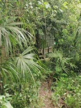 - Участок утопает в зелени: на нём произрастают редкие сорта фейхоа, яблони, изысканный инжир и даже высокие пальмы, придающие месту особый шарм.