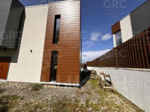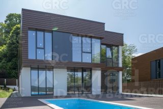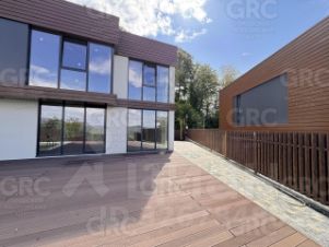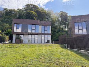 На первом этаже расположены просторная кухня, уютная гостиная, гостевая спальня, просторный холл и санузел. На втором этаже вы найдете три уютные спальни и еще один санузел. Большие панорамные окна из алюминиевого профиля открывают потрясающий вид на горы, придают интерьеру особую атмосферу и наполняют дом светом.