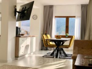 До подъемников — всего полтора километра, пятнадцать минут неспешной прогулки по живописным тропам. Рядом — магазин, кафе и рестораны, где можно насладиться местной кухней. До аэропорта, пляжей и Олимпийского парка — чуть более сорока минут по отличным дорогам.