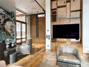 - Эксклюзивные отделочные материалы: патинированная медь, титановые элементы, 300-летний дуб.