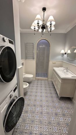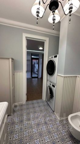 1 этаж — кухня-столовая со встроенной техникой и газовой плитой — гостиная с выходом к бассейну (можно изолировать как спальню) — гардеробная — санузел с душевой и постирочной
