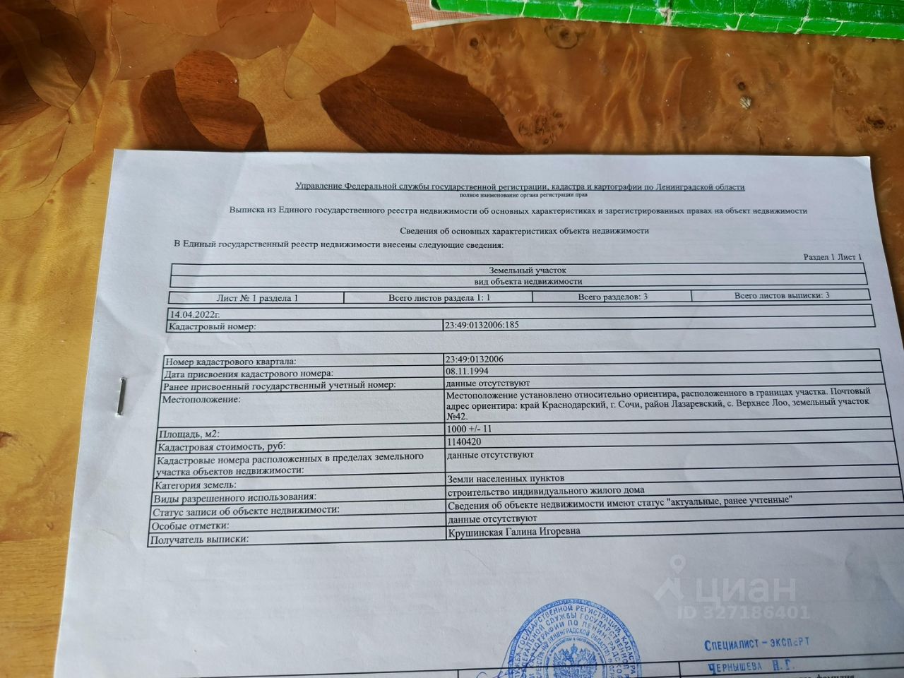 Продается участок 10 соток. Удобное расположение: 1.участок не подтопляемый, принимая во внимание, что дожди в осенне-весенний сезон идут несколько дней, фундамент и участок никогда не будут подмываться, так же ему не грозят селевые сходы и камнепады. 2.площадка под строительство готова. 3.перед участком удобная площадка и электрический столб. 4.подьезд - асфальтовая дорога. 5.участок граничит с соседями только с одной стороны- снизу. Градостроительный план. Кадастровый номер 23:49:0132006:186