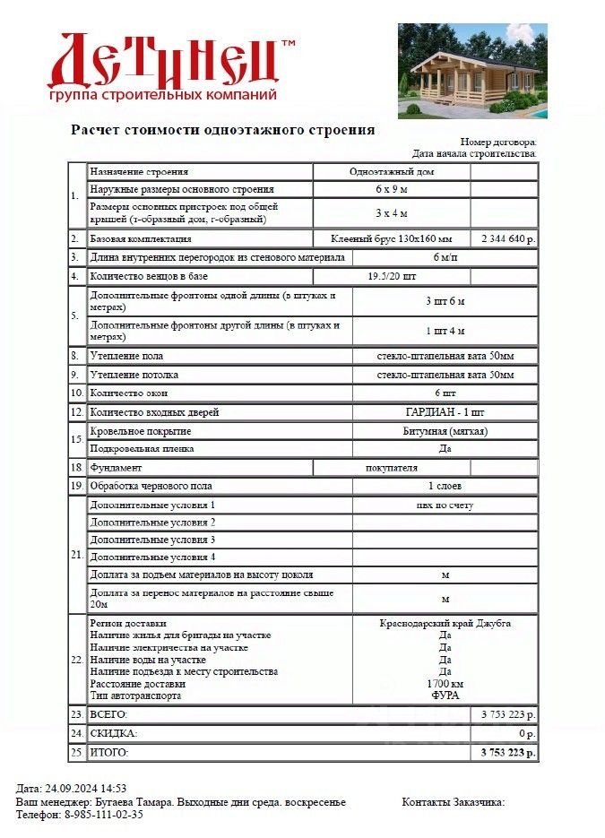 Участок продаётся вместе с подрядом на строительство одноэтажного жилого дома из клееного бруса, предназначенного для постоянного проживания в любое время года.