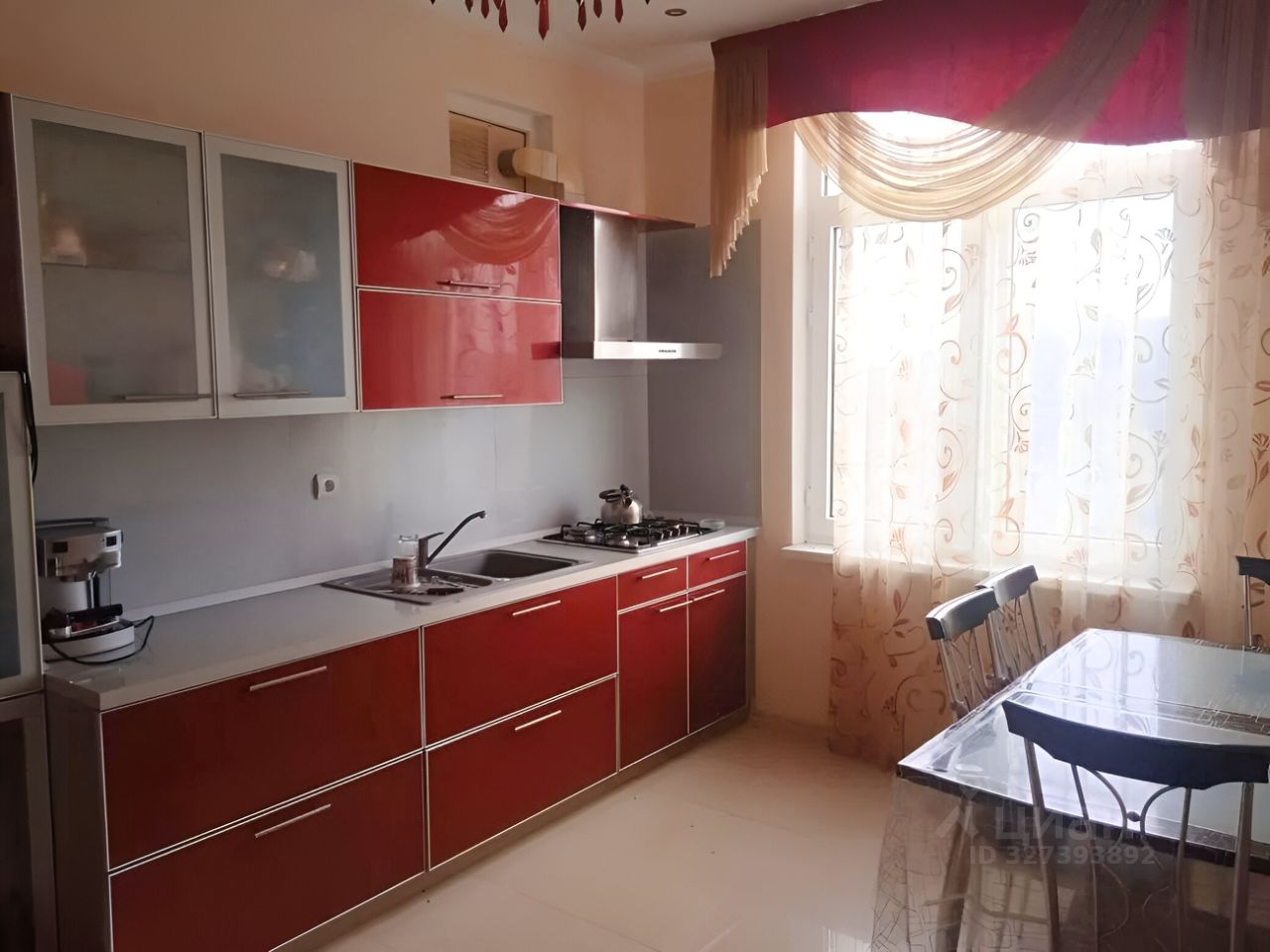 * Кухня. (смотрите на фото - с красным гарнитуром).