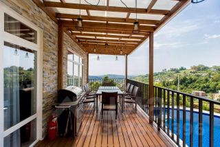 Представьте: вы просыпаетесь утром, выходите на террасу третьего этажа и любуетесь потрясающим видом на горы. Днём отдыхаете у подогреваемого бассейна, нежась в шезлонге под тёплыми лучами солнца. Вечером — расслабляетесь в бане или устраиваете ужин с друзьями в мангальной зоне.