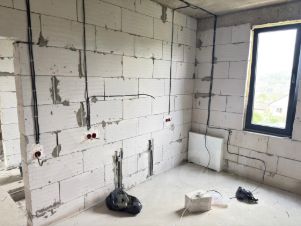 По всему дому проложены водопроводные и канализационные труб, разводка электросетей. По площади всего дома, кроме подвального этажа, проведен водяной тёплый пол.