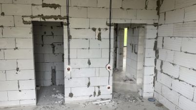 Дом построен с перспективой расширения: кровля сделана эксплуатируемой, что позволяет в будущем пристроить ещё один этаж или обустроить зону отдыха. Участок имеет удобную прямоугольную форму, залито основание под забор, а с двух сторон сделаны подпорные стены. Участок ровный, что облегчает его дальнейшее обустройство. Электричество проведено, мощность составляет 15 кВт. Газификация пока не проведена, но посёлок рядом уже газифицирован. Центральная вода пока отсутствует, но документы в Водоканал поданы, и труба проходит рядом с участком. Канализацию планируем оборудовать септиком.