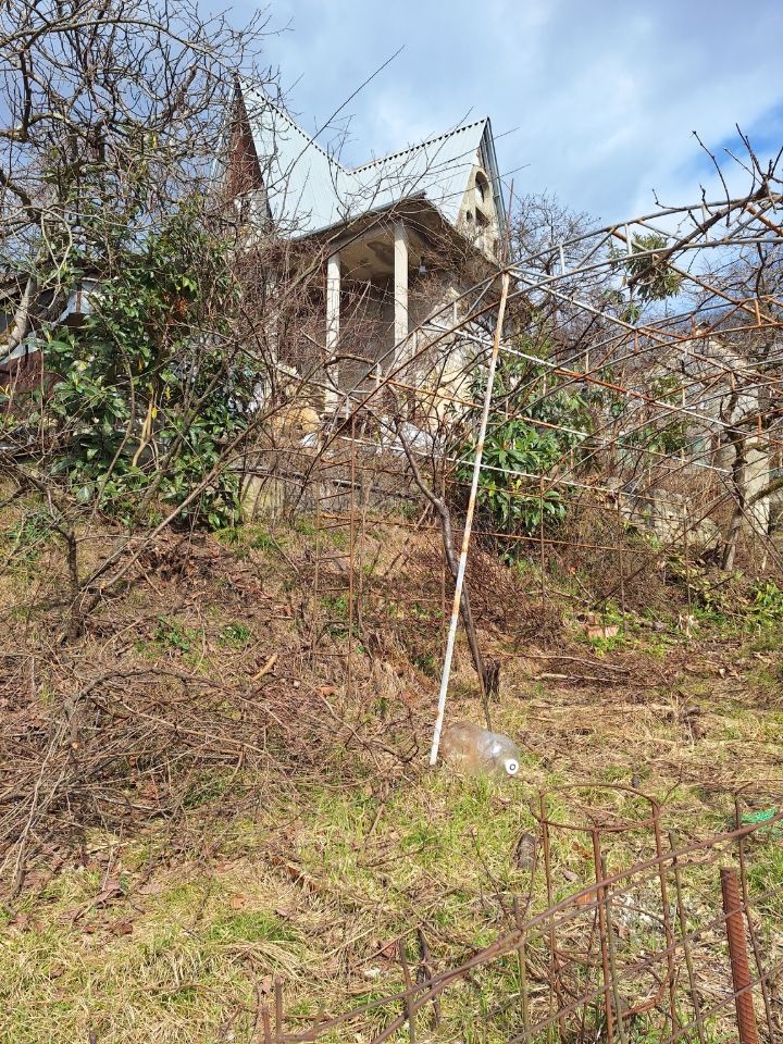 Участок имеет уклон. Стоит дом 2 этажа + мансарда . Насаждения: виноград, хурма мушмула и т.п Документы готовы к продаже , обременений нет. Дорога хорошая. Проезд на любой низкой машине. Можно использовать , как дачу , либо на постоянное проживание. Подробности по телефону. Цена указана ниже рынка. Продажа по необходимости.